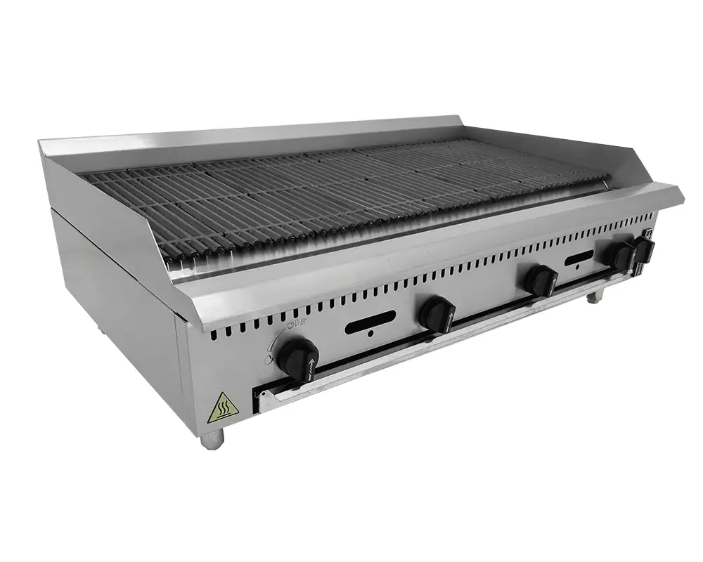 - Grelhas removíveis oferecendo versatilidade e ângulo de 15° para cocção;