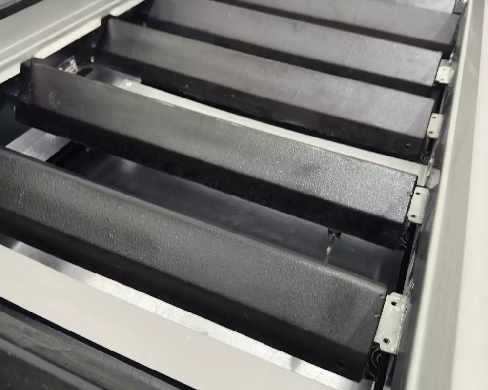 - Calha defletora removível fabricada em ferro fundido, facilitando a limpeza;