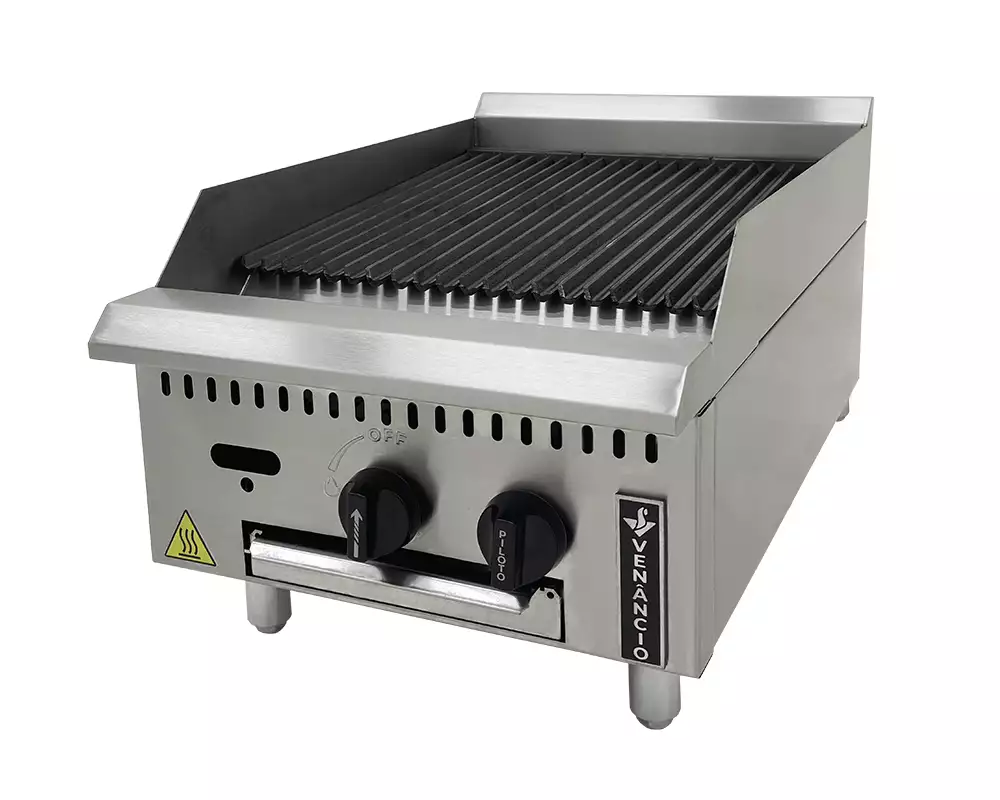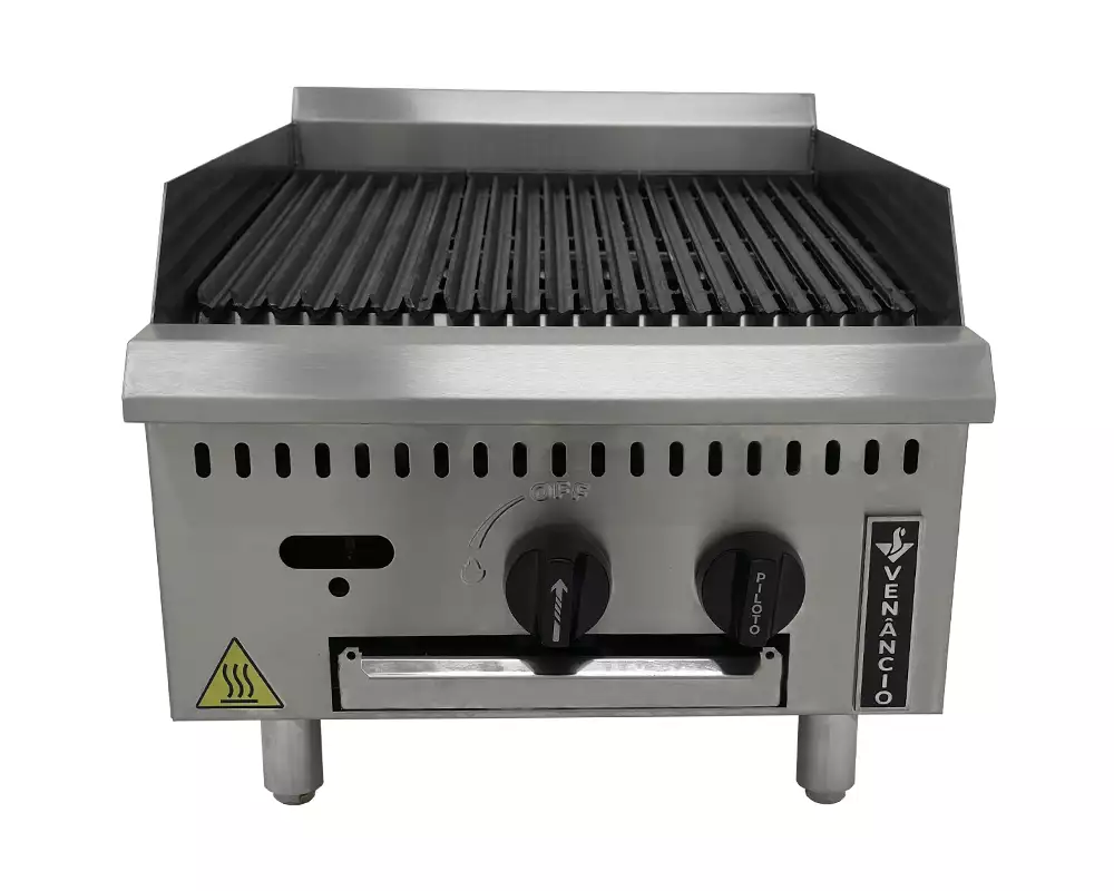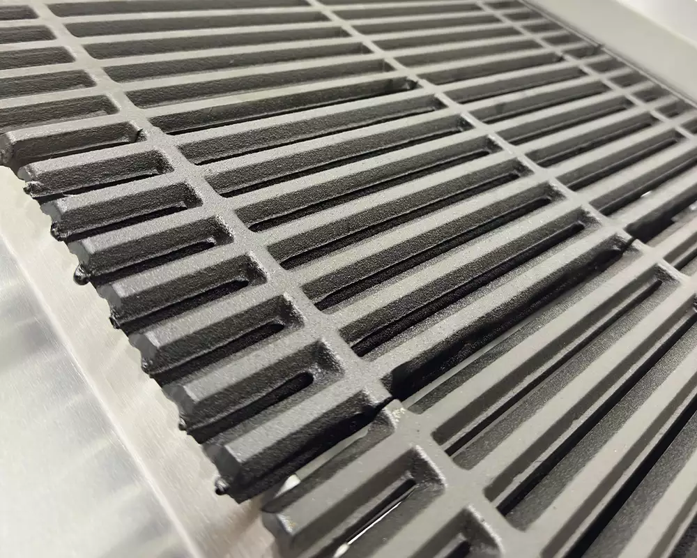 - Grelhas de ferro fundido de dupla face, ou seja, os dois lados da grelha possuem funcionalidade para assar (um lado é para alimentos leves e outro pesados), garantindo, desta forma, um maior controle da chama e mais uniformidade no assado;