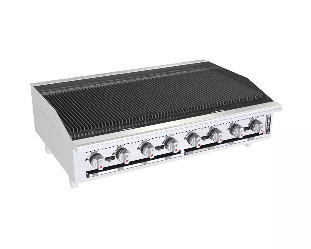 Charbroiler industrial Venâncio com grelha dupla face em ferro fundido, ideal para churrasqueiras e cozinhas profissionais. Alta durabilidade e eficiência para restaurantes.