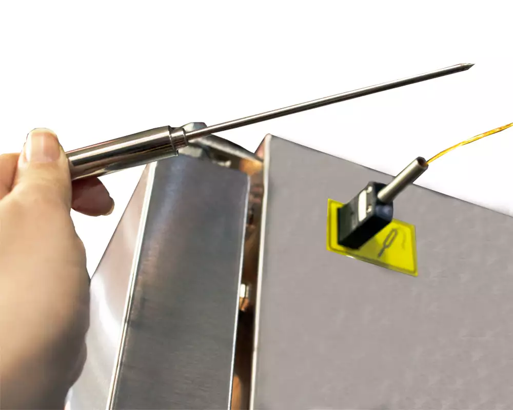 Acompanha sensor de núcleo que tem como função determinar o ponto de cozimento (mal passado, bem passado ou ao ponto), pois irá efetuar a medição através de uma sonda inserida no interior do alimento;