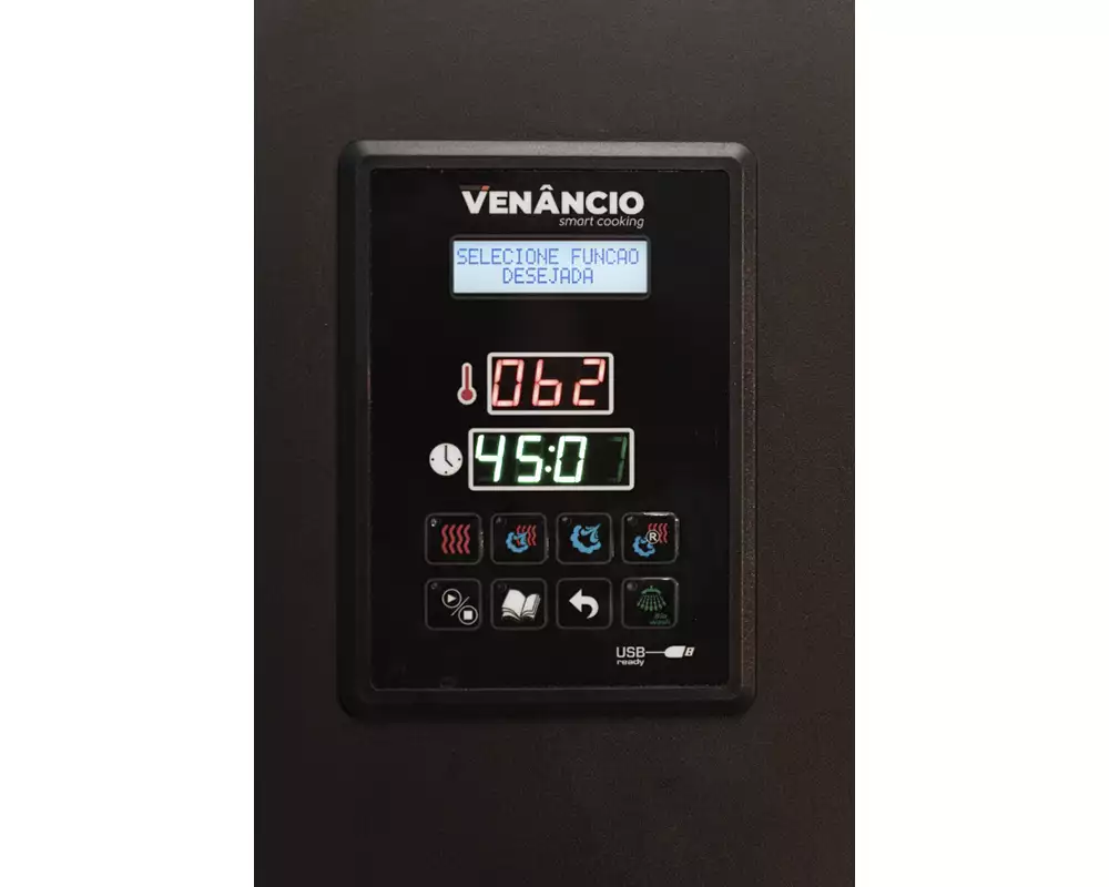 Praticidade: O design e a engenharia aplicados na idealização deste forno foram inspirados para otimizar a operação e programação do equipamento, tornando-o o de fácil operação do mercado, sendo que qualquer pessoa pode manuseá-lo com um simples toque e sem necessidade de extensos treinamentos. O controlador foi desenvolvido após muitas pesquisas e incansáveis testes de mercado, nos quais conseguimos um processador inteligente e de fácil utilização, além disso, utiliza-se também o prático sistema de limpeza (Bio Wash) que possibilita manter o forno limpo e higienizado. Facilidade: Este forno é o único do mercado cujo controlador contém memória disponível para inserir até MIL RECEITAS, através da entrada USB. Isso possibilita, ao profissional de cozinha, utilizar as receitas disponíveis e também criar e personalizar as suas próprias, combinando tipos de funções diferentes; Painel multifunções intuitivo e de fácil manuseio, de operação em frases escritas, sem usar números ou códigos;