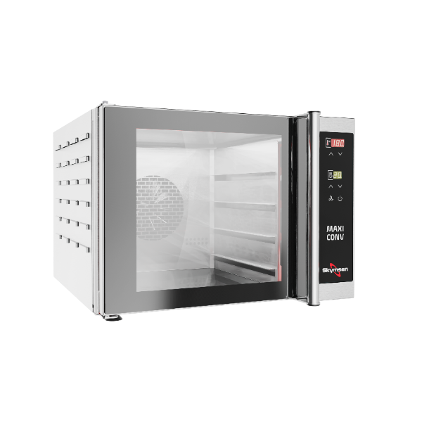 Produzido totalmente de aço inox com design robusto, o painel facilita a sua operação enquanto o suporte para as quatro assadeiras é removível, facilitando assim a higienização do equipamento. O forno de convecção maxiconv foi desenvolvido com turbina de convecção, que garante distribuição uniforme do calor por todo forno, podendo ser desligada de acordo coma preferencia do operador. Com moderno painel digital que oferece um controle preciso da temperatura e do tempo de produção, contando também, com temporizador e alarme sonoro quando o tempo de produção for finalizado.